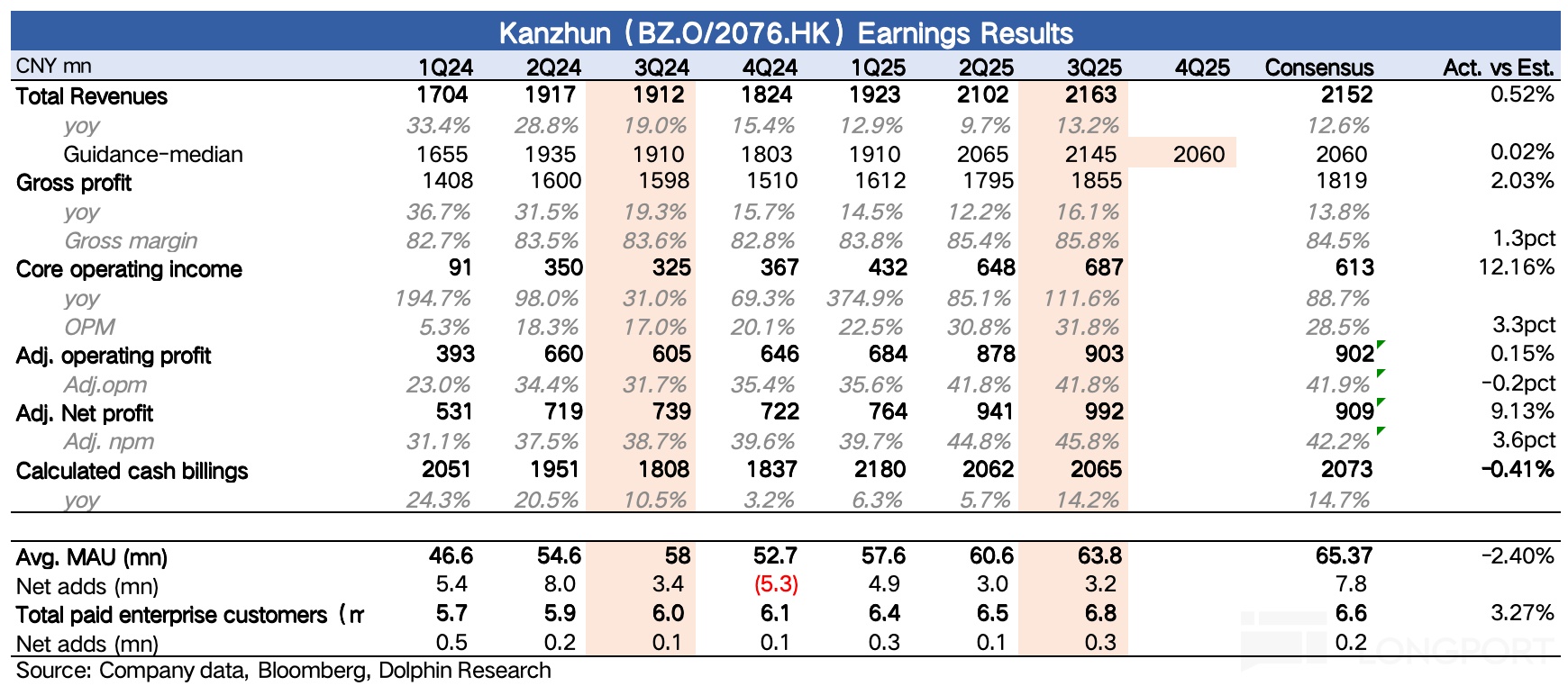 $BOSS直聘-W(02076.HK) $BOSS 直聘(BZ.US) 三季报落地,整体业绩基本符合预期,还是那个 BOSS——尽管还是抗压,但公司超越 Beta 的能力仍然得到显现。