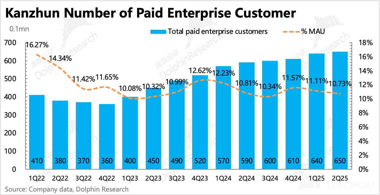 尽管体感上,大环境的压力还是不小。但从 BOSS 直聘的数据来看,招工更灵活的中小企业已经有一些触底回暖的迹象。电话会中,公司提及三季度 B 端日活和 C 端日活首次同步增长,以及今年年初以来,不同规模的企业客户续约率都在回升。