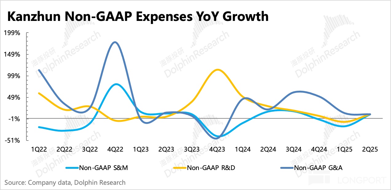 5、保持控费提效:最终核心经营利润 6.9 亿,超出市场预期的 6.1 亿,利润率 32%,环比提高 1pct,和前两个季度一样,主要源于销售费用、研发费用的大幅下滑。这种严格控费趋势,是 BOSS 直聘今年在内部经营上的主基调。