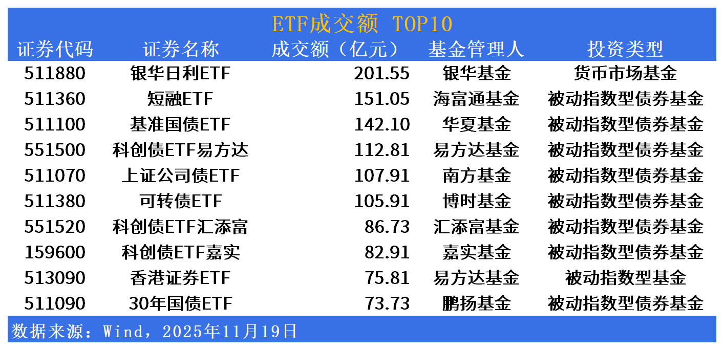 成交额方面,银华日利ETF(511880)今日成交额居首,达201亿元;短融ETF(511360)、基准国债ETF(511100)、科创债ETF易方达(551500)成交额紧随其后。