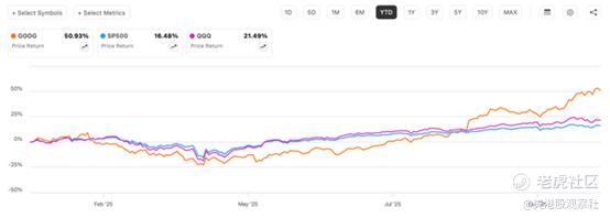 谷歌今年股价表现十分强劲。截至目前,该股年内涨幅约达51%,显著跑赢其所属的两大核心基准指数:标普500指数与纳斯达克100指数。