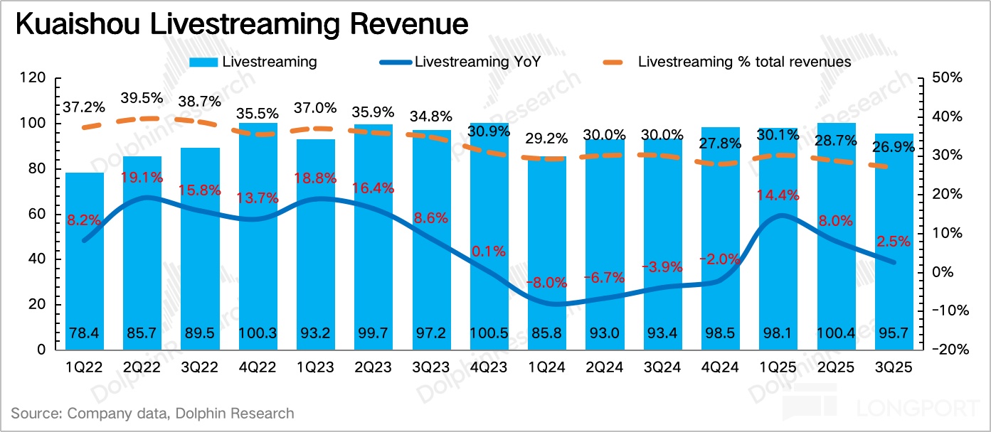 5. 直播压力超预期:三季度直播付费增长 2.5%,相对疲软,主要受行业萎缩趋势以及竞争影响。