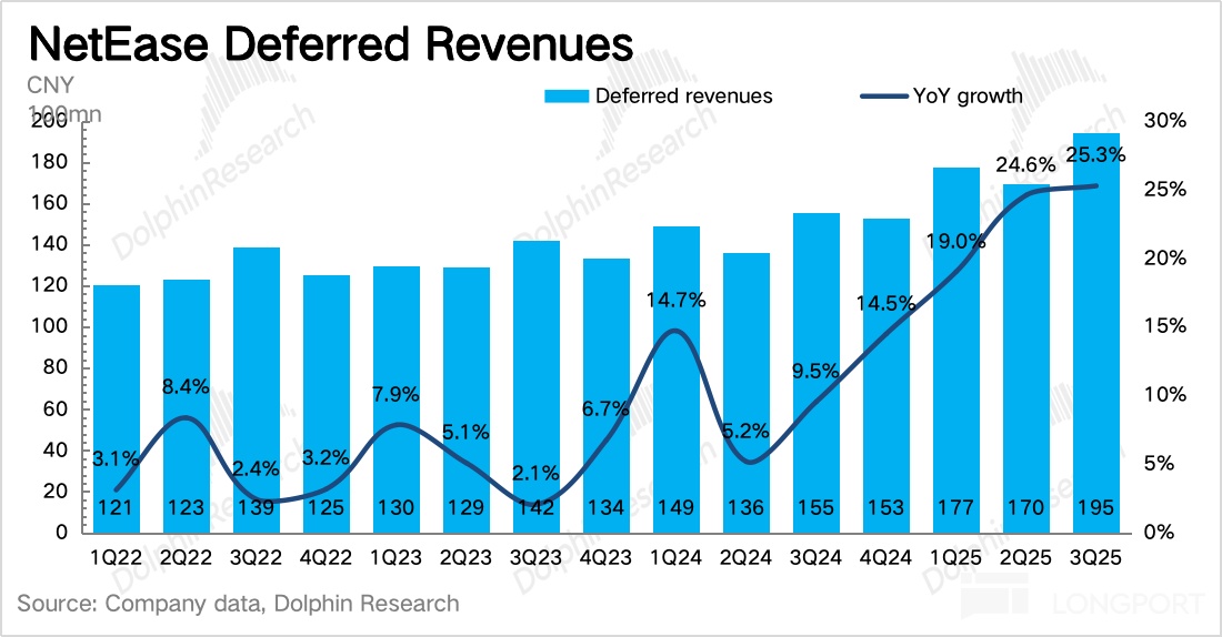 一般而言,海外游戏、端游会比本土手游的递延周期稍长一些。三季度的增量主要来自于海外手游,以及本土端游收入。因此本季度确认的游戏收入放缓,可能也与递延确认周期变化有关。