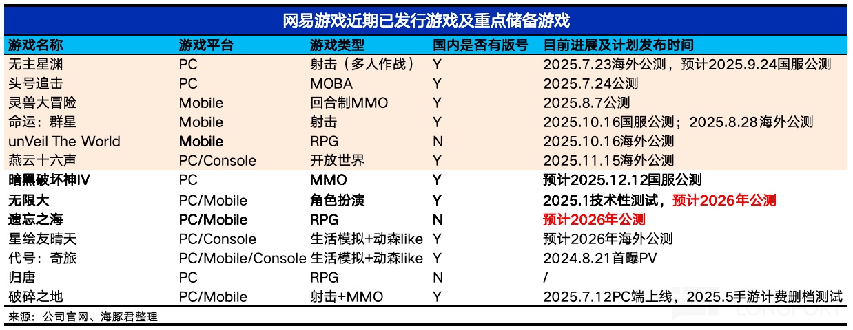 进入四季度,上线的新游戏包括《命运:群星》国服、《unVeil The World》海外服、《燕云十六声》海外服,以及预期 12 月中旬上线的《暗黑破坏神 4》国服。但目前来看前两款游戏表现都有点高开快速低走,《燕云》的持续性还有待观察。明年的新游重头戏还是《遗忘之海》和《无限大》。
