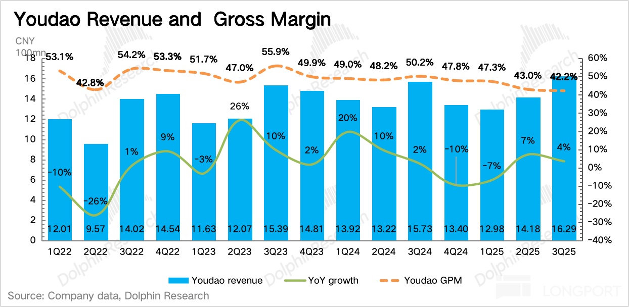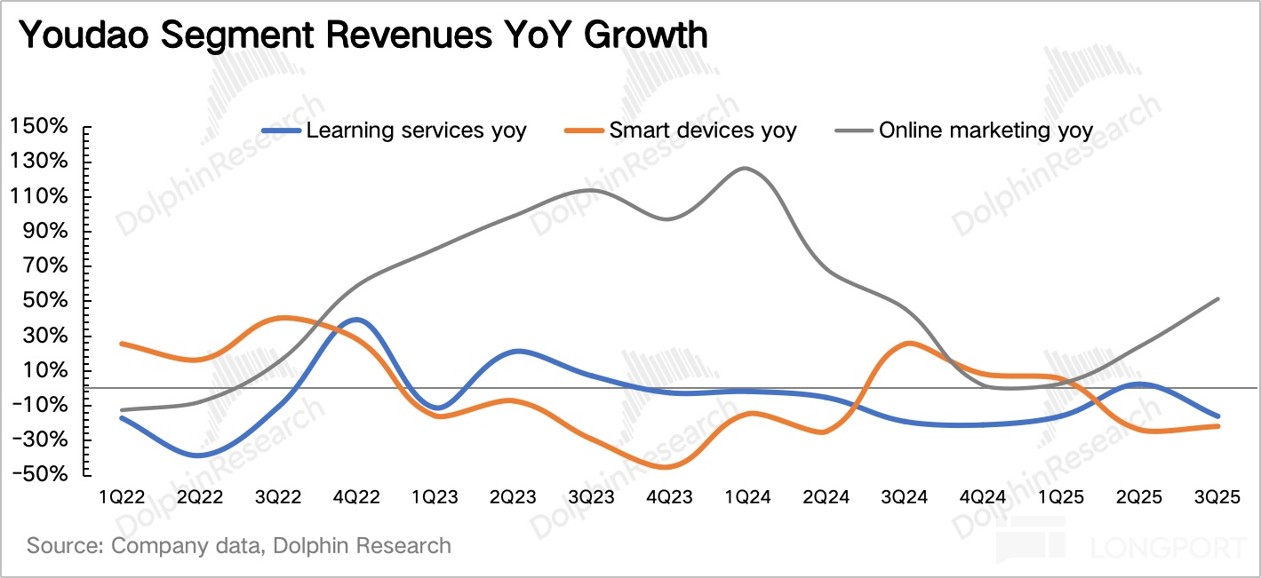 游戏之外的有道教育、云音乐业务,则专注于自给自足,专注盈利回血。但三季度收入端偏寡淡,或多或少都有点不及预期。