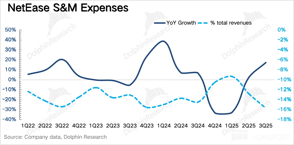 但市场对当期的销售费用预期更偏线性推演,贴合二季度的增速来给预期,可能还是受到前一年网易严格控制的营销策略和宣发团队反腐的惯性影响,预期保守了。
