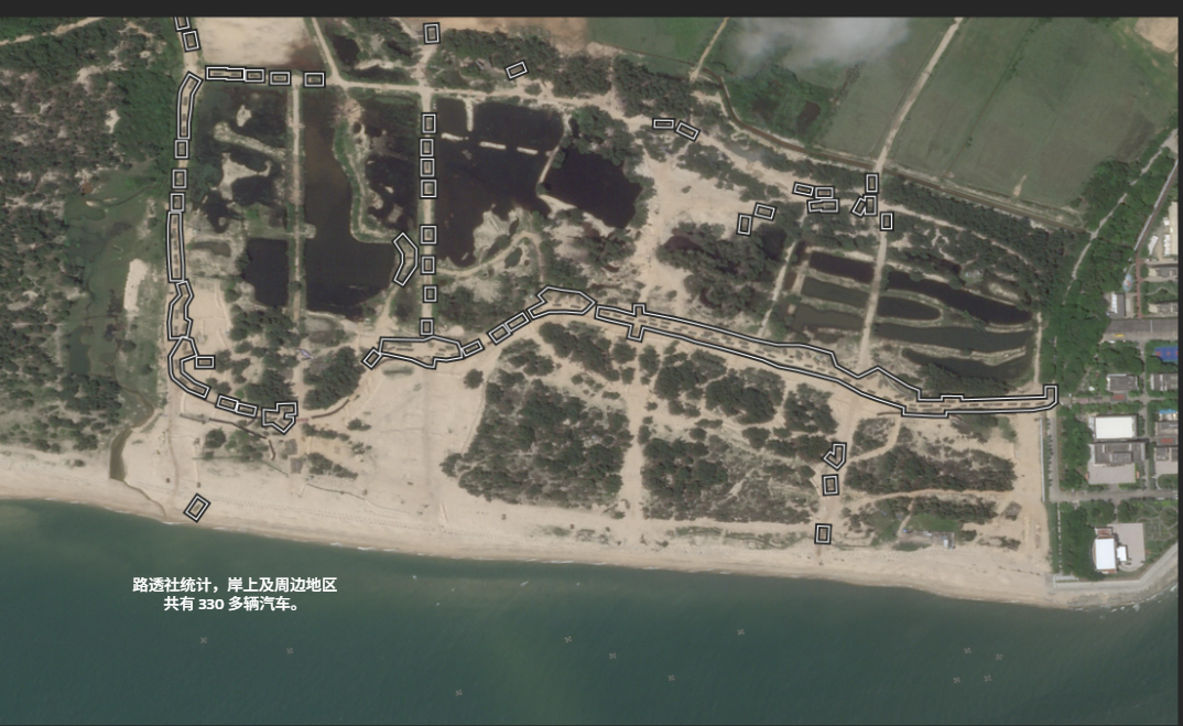 8月23日下午2点59分,也就是三艘货船出现在揭盛附近海滩六小时后,路透社统计海滩及周边区域至少有330辆车。其中一些集中在已识别的登陆点,说明可能来自这些“影子海军”船只。但路透社无法确认所有车辆都是此次演习期间卸下的。