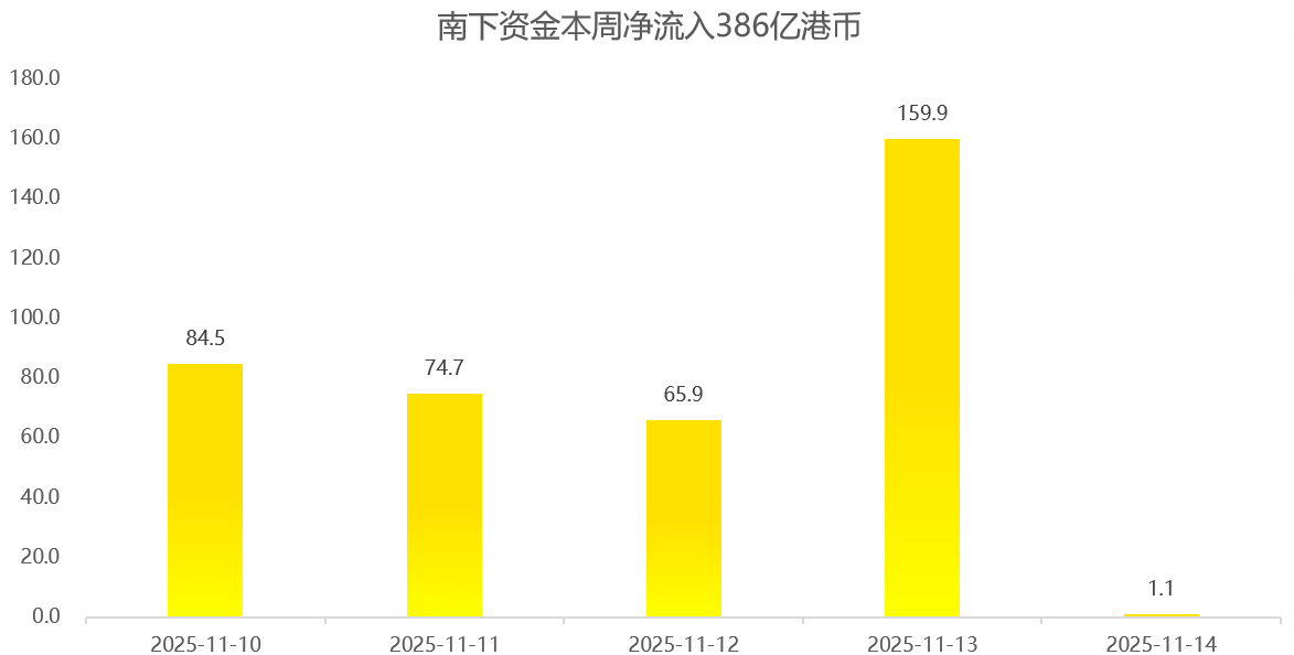 虽然行情惨淡,但南下资金依然净买入386亿港币: