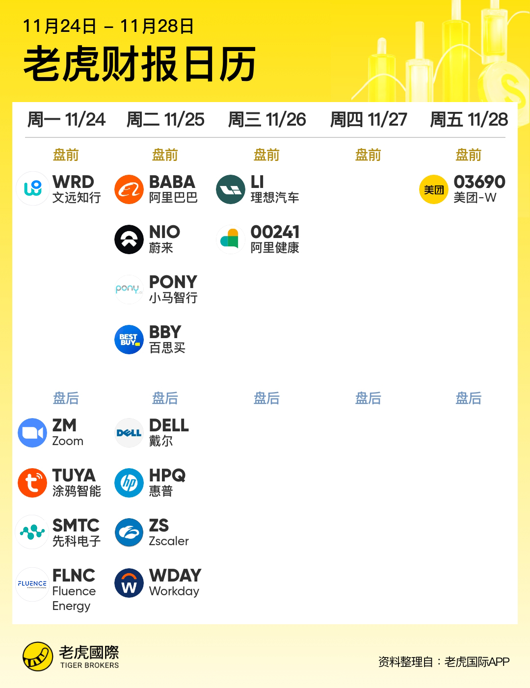 3. 下周,阿里巴巴、蔚来、理想、美团等公司将发布财报: