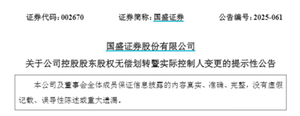 11月19日晚间,国盛证券公告称,江西省交通运输厅拟将其持有的江西省交通投资集团有限责任公司(以下简称江西交投)90%股权无偿划转至江西省国有资产监督管理委员会。本次划转完成后,国盛证券实际控制人将由江西省交通运输厅变更为江西省国资委,控股股东仍为江西交投。
