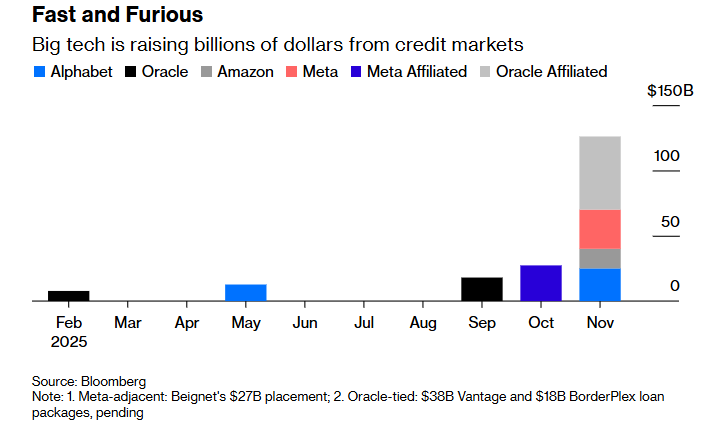 雄心是有代价的。随着科技公司竞相建设AI基础设施,那些通过创新融资手段筹资的公司,正受到信贷市场的惩罚。以Meta为例。Meta平台公司在路易斯安那州农村建设的大型数据中心项目就是典型案例,项目资金来自表外融资。