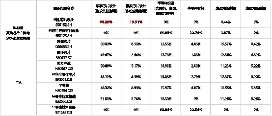 其中科创芯片设计指数选取科创板内业务涉及芯片设计领域的30只上市公司证券作为指数样本,以反映科创芯片设计领域上市公司证券的整体表现。相对于科创板的科创芯片指数、科创半导体材料设备指数而言,科创芯片设计更聚焦大脑环节,即细分设计方向,数字芯片设计 模拟芯片设计合计占比高达95%,前十大成分股包括寒武纪、海光信息、澜起科技、芯原股份、佰维存储、睿创微纳、思特威、晶晨股份、东芯股份、恒玄科技。对比之下,科创半导体材料设备指数更聚焦于上游材料和设备环节,科创芯片指数则聚焦于芯片全产业链。