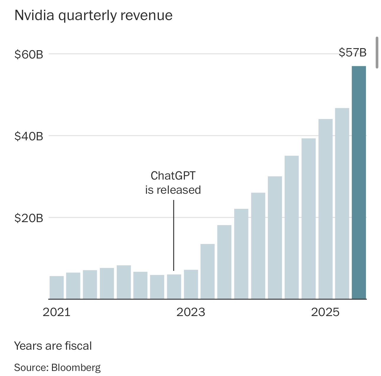 公司本周公布了又一个创纪录的季度营收,以五百七十亿美元的销售额超出投资者预期,同比增加62%。英伟达预测销售额将继续增长。
