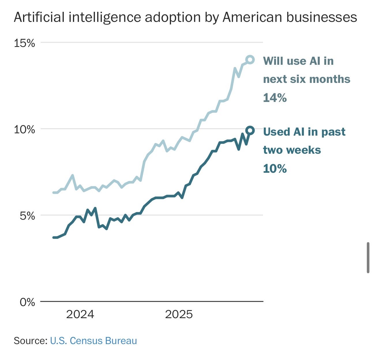 AI行业的健康发展,以及更广泛的美国经济,可能取决于这些企业在未来几年是否认为AI工具有足够价值,从而愿意在这项技术上投入更多资金。
