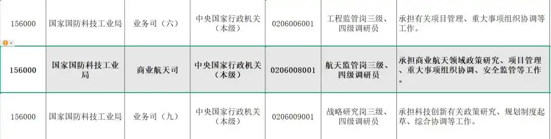 据“2026年度中央机关公开选调公务员职位表”,职位简介中明确,该岗位承担商业航天领域政策研究、项目管理、重大事项组织协调、安全监管等工作。