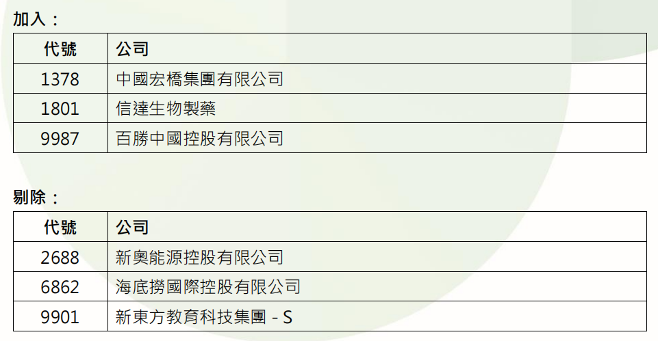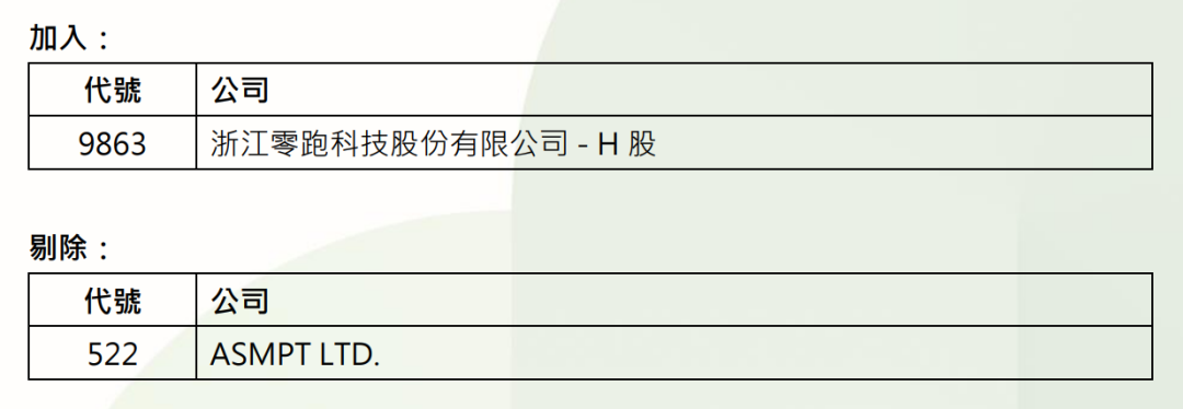 此次调整中,恒生指数成份股数目由88只增加至89只,信达生物制药获纳入恒生指数。恒生科技指数成份股则加入零跑汽车,剔除ASMPT,成份股数量维持30只不变。