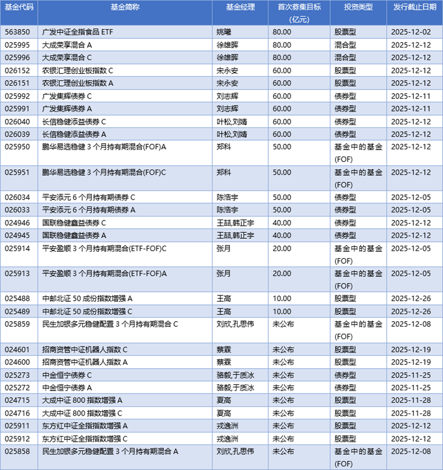 四、11月24日新发基金一览(不包含传统封闭式基金)