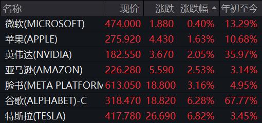 科技“七巨头”集体走强,AI与芯片股成焦点