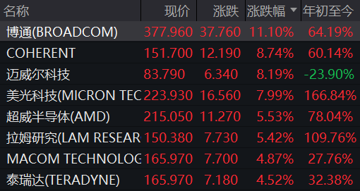 值得一提的是,存储巨头闪迪被纳入标普500指数,股价大涨超13%。受AI数据中心需求旺盛等因素影响,闪迪年内股价已经涨超5倍。公司近期还上调了NAND闪存芯片的合约价格,并预计数据中心市场将成为NAND闪存最大的市场。