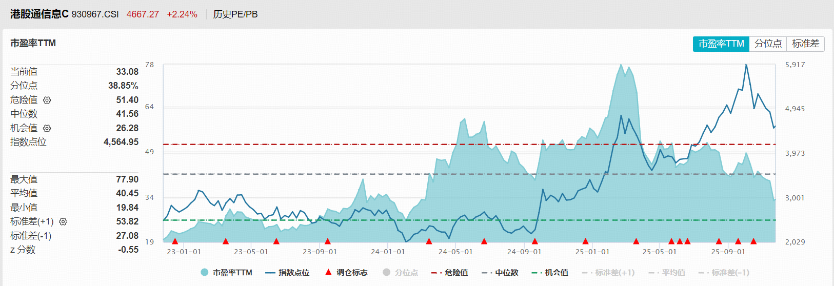 业内人士指出,许多中国大型科技公司的估值仅为美国科技股的三分之一至一半,却推出了足以与美国 AI 产品抗衡的竞品。细看中国科技板块,港股科技的估值吸引力则更胜一筹。以中证港股通信息技术综合指数为例,近3年PE估值分位点仅为38%左右,远低于创业板指(83%)和纳斯达克100(67%)。