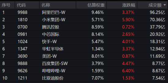 注:以上为恒生科技指数成分股,仅做展示,不作为个股推介