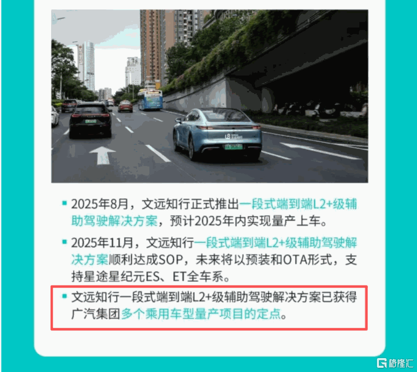 另一个潜在的增长趋势藏在文远知行财报长图的角落里。在技术突破这一部分,文远知行非常低调地官宣了“旗下一段式端到端L2 级辅助驾驶解决方案已获得广汽集团多个乘用车型量产项目的定点”。作为乘用车年销量数百万辆的中国一线OEM,文远知行能够拿下“多个”乘用车型的L2量产定点,不仅证明了其一段式端到端技术在OEM侧的价值链,更为未来营收的进一步扩大预埋了增长原点。