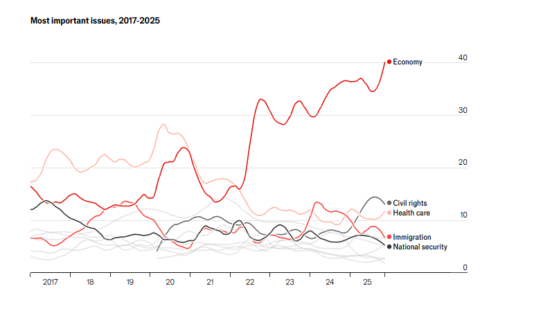 马克思说,人们创造自己的历史,但不是随心所欲地创造。这一点对特朗普同样适用。特朗普第一任期内,公共舆论最终被对医疗问题的担忧所主导,尤其是在新冠疫情爆发之后。疫情的经济影响以及2022年2月俄罗斯入侵乌克兰,使通胀成为拜登任期的标志性问题。