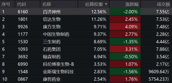 港股通创新药ETF(159570)标的指数成分股多数飘红:康方生物涨超4%,石药集团涨超3%,信达生物、中国生物制药涨超2%。