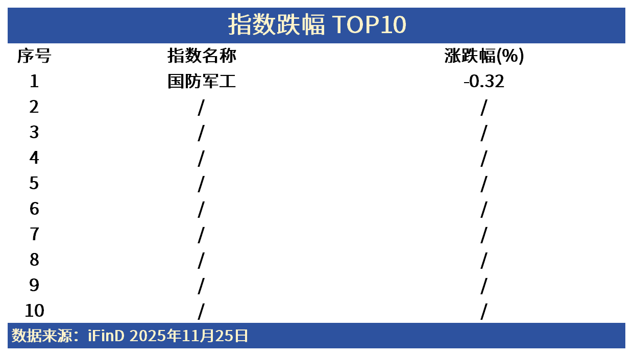 截至2025年11月25日A股收盘,国防军工回调1.21%,江龙船艇、天海防务跌幅居前。