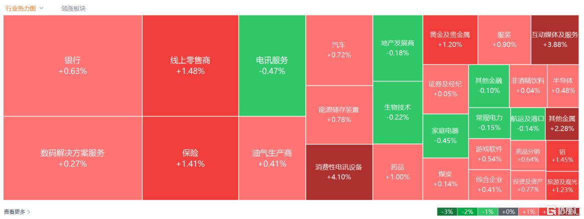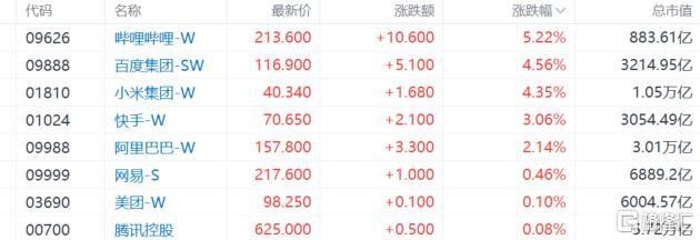 大型科技股普遍走强,百度、小米涨幅超4%,阿里巴巴、京东、美团皆上涨。个股消息面上,摩根大通大幅上调百度目标价至188美元,称百度正转型为AI基础设施供应商;雷军斥资超1亿港元增持小米集团股份。