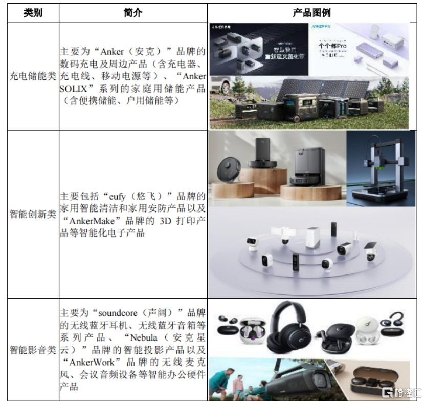 公司产品主要涵盖充电储能类、智能创新类和智能影音类三大系列,打造了Anker、soundcore、eufy、Nebula、AnkerWork、AnkerMake、AnkerSOLIX等七大品牌矩阵。