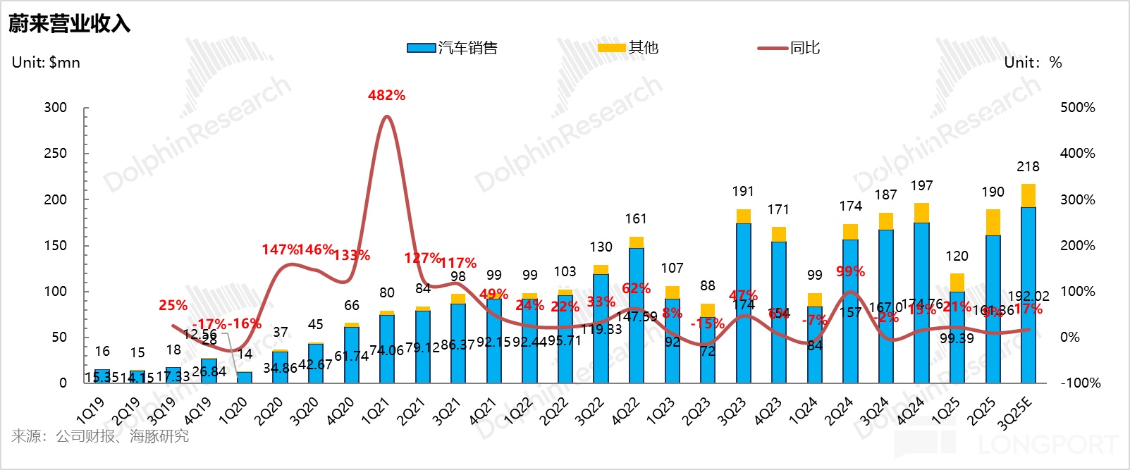 蔚来三季度整体收入 218 亿,同比增速 17%,基本与市场预期持平,其中卖车业务 192 亿,虽然卖车单价由于本季度车型结构等阶段性影响在环比下滑,但 L90 的爆销,也直接带动卖车销量端达到 8.7 万辆,环比增速 21%,而对于蔚来来说,销量就是活下去的希望。