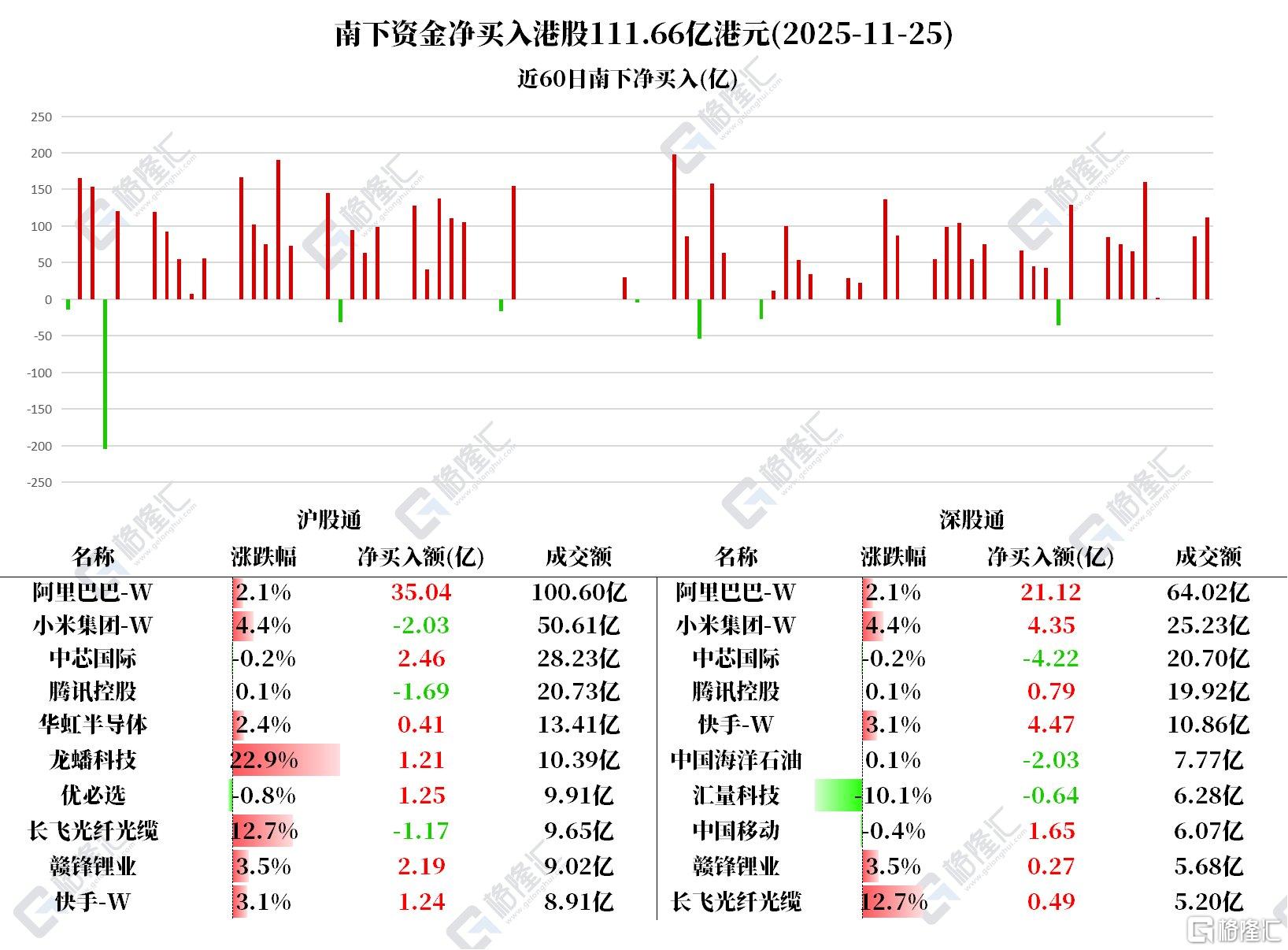 14、南下资金净买入港股111亿港元,大幅加仓阿里;