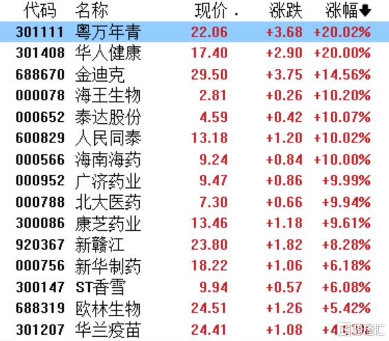 受此影响,A股市场医药股大幅增长,医药商业、化学制药、流感、创新药等方向领涨。