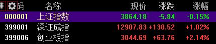 A股三大指数今日涨跌不一,截至收盘,沪指跌0.15%报3864点,深证成指涨1.02%,创业板指涨2.14%。全市场成交额1.8万亿元,较前一交易日缩量290亿元,近3600股下跌。