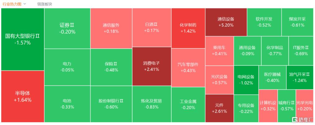 盘面上,医药商业板块走高,华人健康、瑞康医药等多股涨停;商业百货、退税商店板块走强;CPO概念继续活跃,永鼎股份涨停、中际旭创涨超13%创新高;免税概念、培育钻石、创新药等板块涨幅居前。另外,船舶制造板块下挫;航天航空、核污染防治板块走势低迷;航母概念、数字水印及海工装备等板块跌幅居前。