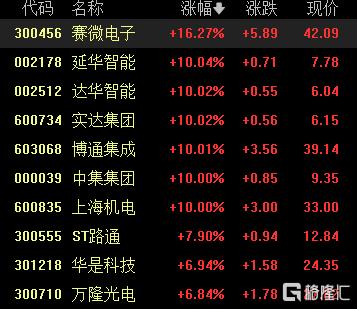 物联网板块震荡走低,赛微电子涨超16%,延华智能、达华智能、实达集团等10cm涨停,华是科技、万隆光电跟涨。