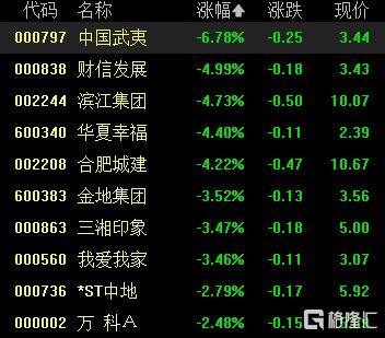 地产股下跌,中国武夷跌超5%,滨江集团、华夏幸福、合肥城建跌超4%,金地集团、三湘印象等跟跌。