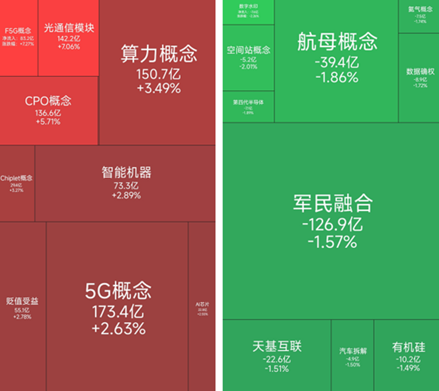 11月26日A股三大指数涨跌不一,截至收盘,沪指跌0.15%报3864.18点,深成指涨1.02%报12907.83点,创业板指涨2.14%报3044.69点。从板块行情上来看,今日表现较好的是F5G概念、光通信模块和算力概念,而航母概念、军民融合和有机硅等板块下跌。