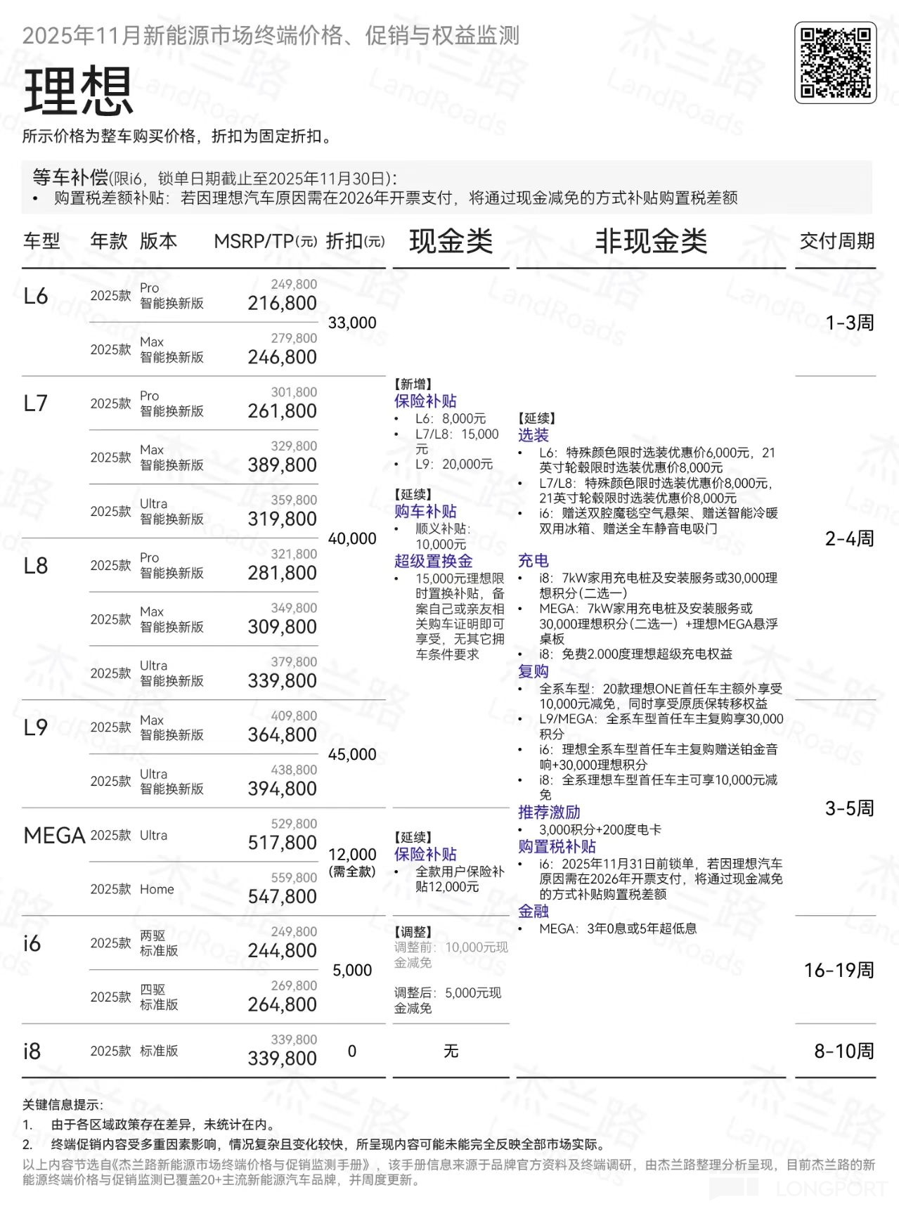 即使在i6和i8两款纯电车型贡献约3-4万辆增量的情况下,整体销量指引也环比上行了0.7-1.7万辆,背后隐含的L系列增程车型的销量相比三季度还要再次大幅环比下滑,尤其在理想还在对L系列加大折扣力度的情况下,L系列“内忧外患”比想象中的更为严重。