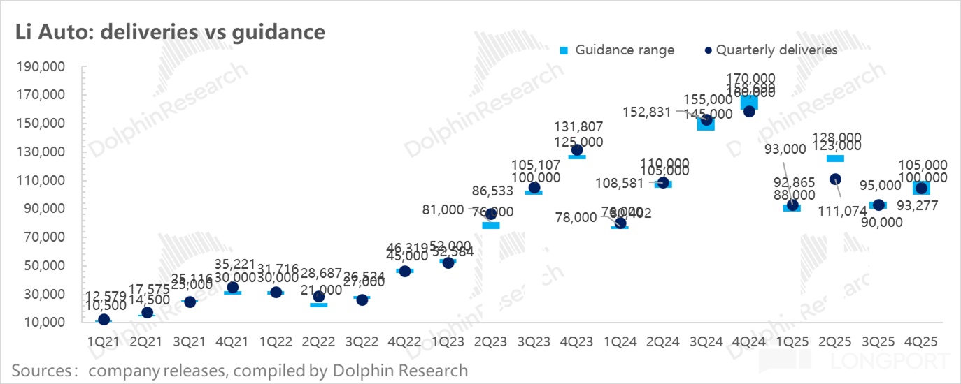 而在此次理想的四季度指引上,销量和收入指引再次大幅低于预期: