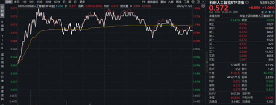热门ETF方面,重点布局国产AI产业链的科创人工智能ETF(589520)场内涨幅盘中上探1.94%,收涨1.06%,全天成交额4452万元,逐日放量3连涨