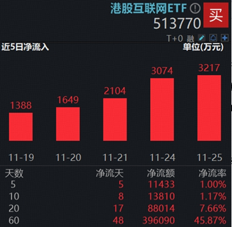 阿里具有出众的AI基础设施以及AI全栈产品,放眼国内,有望成为可以类比海外市场谷歌的全栈AI以及专用TPU。重仓阿里巴巴等互联网龙头港股互联网ETF(513770)自阶段低点以来连续修复,资金同步加码,近5日密集吸金1.14亿元