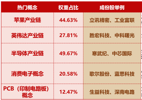值得关注的是,电子ETF(515260)标的指数囊括热门概念,截至10月底,苹果产业链权重占比44.63%,英伟达产业链权重占比27.81%,PCB(印制电路板)权重占比12.47%