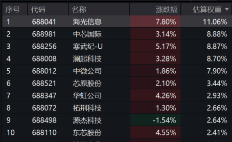 【科创芯片50ETF(588750)标的指数前十大成分股】