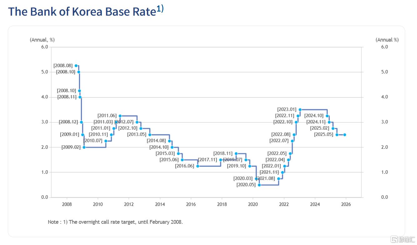 根据韩国银行货币政策委员会发布的声明指出,维持基准利率2.50%不变。