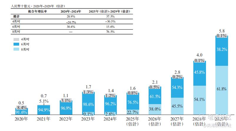从行业规模来看,全球及中国碳化硅外延片市场正处于高速增长阶段,需求驱动明确。根据弗若斯特沙利文报告,全球碳化硅外延片市场规模(按收入计)从2020年的4亿美元增长至2024年的10亿美元,复合年增长率达27.6%;预计2029年将进一步增至30亿美元,2025-2029年复合年增长率为28.4%。中国市场增速更快,2020-2024年市场规模(按收入计)从5亿元增长至14亿元,复合年增长率28.9%;预计2029年将达58亿元,2025-2029年复合年增长率37.5%。电动汽车、光伏、储能、智能电网及轨道交通等领域的需求释放,共同为碳化硅外延片市场提供广阔增长空间。