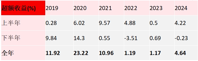 (数据来源:基金定期报告,截至2024年12月31日。超额收益指基金业绩与同期业绩基准的差额,业绩基准为:中证500指数收益率×95% 商业银行活期存款利率(税前)×5%。)基金过往业绩并不预示其未来表现,基金管理人管理的其他基金的业绩也不构成本基金业绩表现的保证。