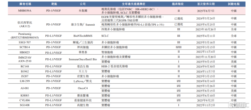 PD-(L)1/VEGF双特异性抗体的全球竞争格局,来源:招股书