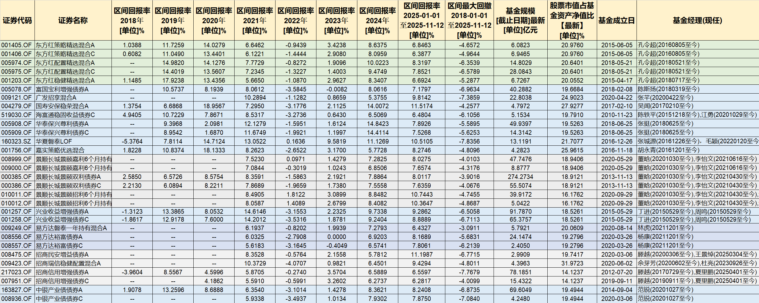 而基金经理方面,如果≥3年独立管理、经历过2022年“股债双杀”,能当年守住正收益或回撤<3%的,说明风控已达标,整体风格和操作不会有太大问题。